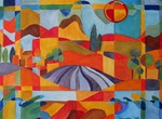 2008Frans landschap in warme gekleurde vlakken.